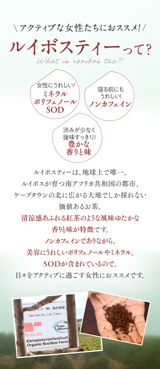 原産国の南アフリカでは、古くからお茶として飲まれてきたと言います!