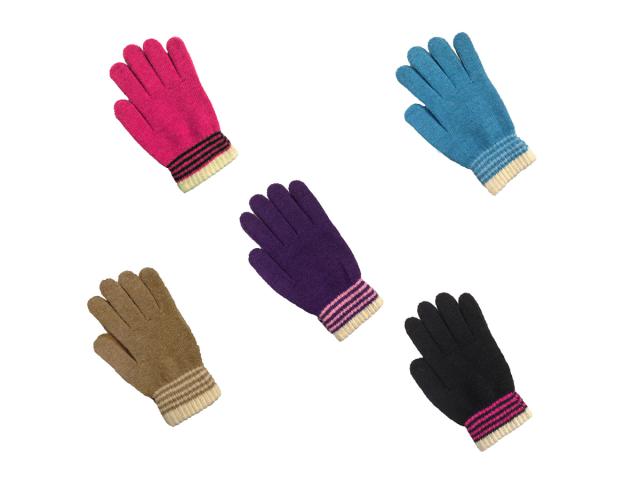 リブ細ボーダーレディース五本指手袋 裏起毛 MST1319 寒さ対策 防寒グッズ グローブ ニット手袋 手袋 ミトン ボーダー
