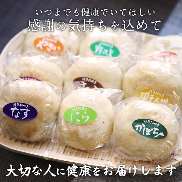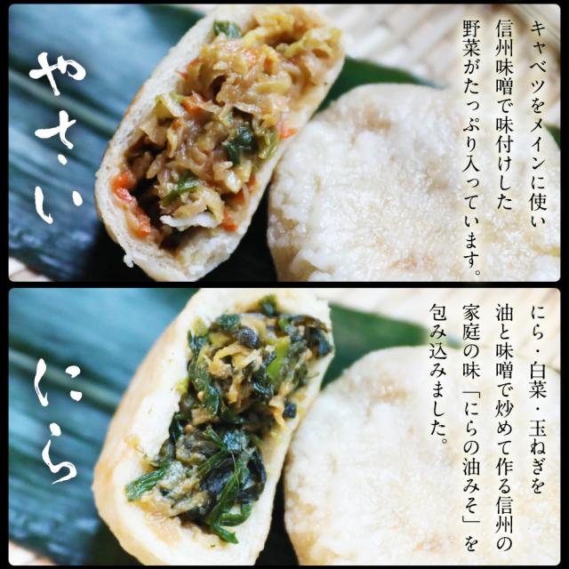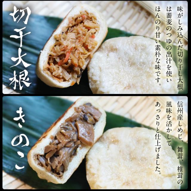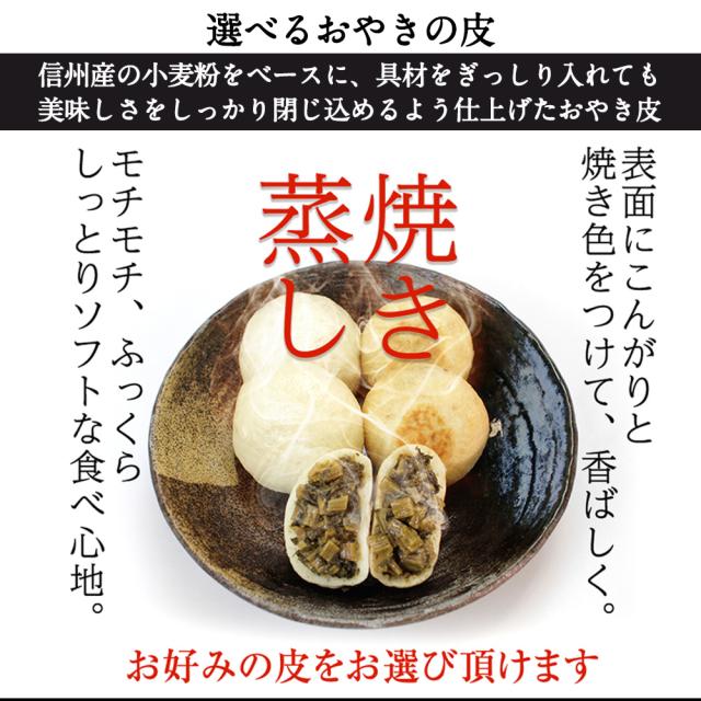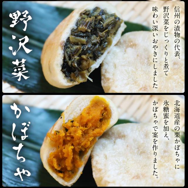 内容量 ・おやき 1コ約100g(野沢菜・切干大根・きのこ・あんこ・なす・野菜・ポテト・にら・かぼちゃ 各1コ)