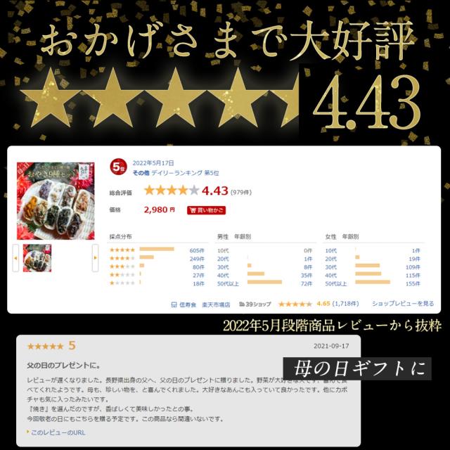 - 数年前にも敬老の日で選んで好評でした! 今年も母方、父方共に祖母から好評で、安心して選べる良さもあります。 注文してからお届けまでも早くて有難いです。 甘いものだと糖尿病が心配なので、1食のおかずにな...