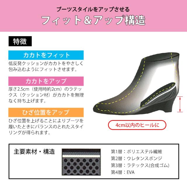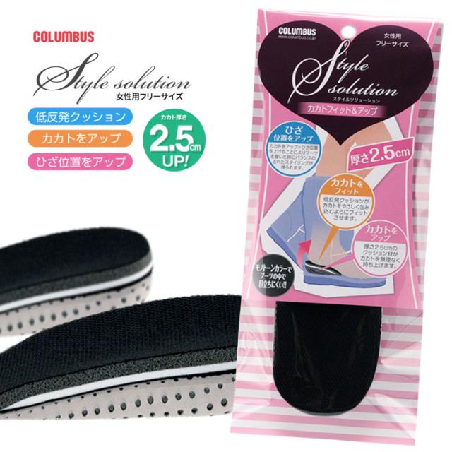 COLUMBUS スタイルソリューション カカトフィット&アップ 低反発クッション インヒール 2.5cm シークレット 美脚 ブラック ウエッジソール 歩きやすい レディース インソール 衝撃吸収 疲労予防 防痛 肉厚 ふかふか クッション 中敷き 脚長効果 シークレットブーツ 膝位置UP