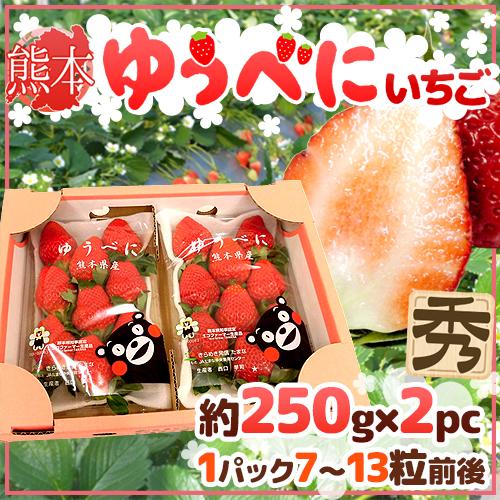 熊本県 ”ゆうべにいちご(熊紅いちご)” 秀品 2パック入り(1パック 7〜13粒 約250g)×《1箱》【予約 12月以降】 送料無料