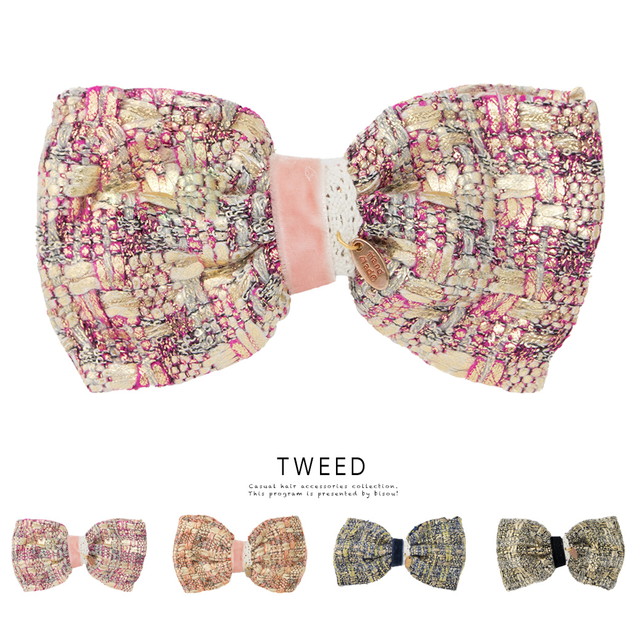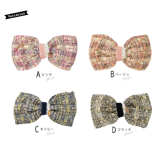【ラメがおしゃれなツイード素材のリボンバレッタ】ラメ/冬/上品/クラシック/ヘアアクセサリー