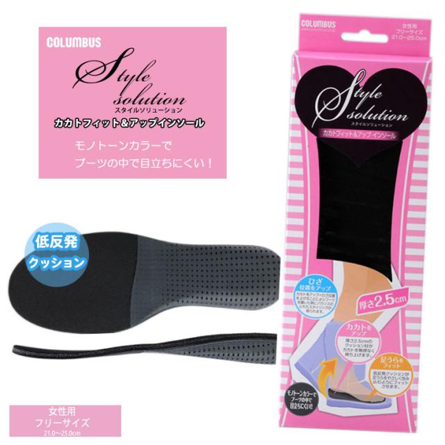 COLUMBUS スタイルソリューション カカトフィット&アップ 低反発クッション インヒール 2.5cm シークレット 美脚 ブラック ウエッジソール 歩きやすい レディース インソール 衝撃吸収 疲労予防 防痛 肉厚 ふかふか クッション 中敷き 脚長効果 シークレットブーツ 膝位置UP