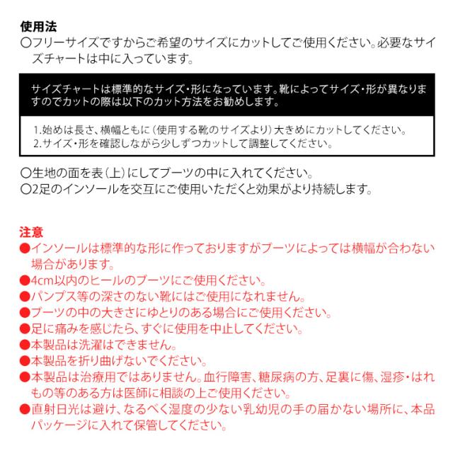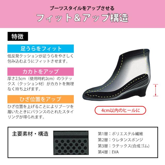 カカトを上げて、ブーツスタイルをアップさせるインソールです。