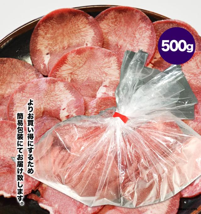 牛タン 薄切り(2mm前後) スライス 味付け無し 500g 簡易袋詰め [焼肉 BBQ バーベキュー]【2個以上から注文数に応じオマケ付き】