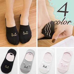 【4色展開】 猫の刺繍と立体耳が可愛い♪ 滑り止め付きカバーソックス