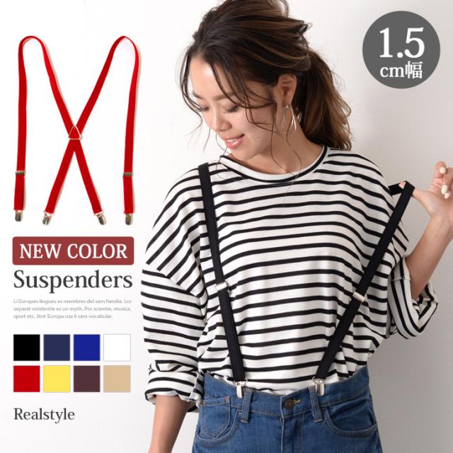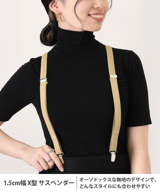 サスペンダー 1.5cm幅 細め レディース メンズ スカート パンツ アクセサリー サスペンダー ベルト ユニセックス 男女兼用 無地 ゴム クリップ ベルト カジュアル シンプル スリム X型 吊りバンド キッズ 子供 子ども