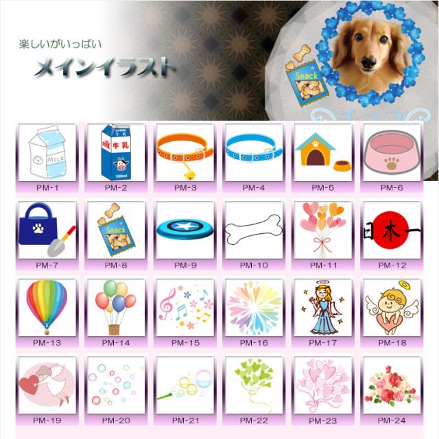 写真の横で、ペットに関連するものや愛らしさを表現するメインイラスト
