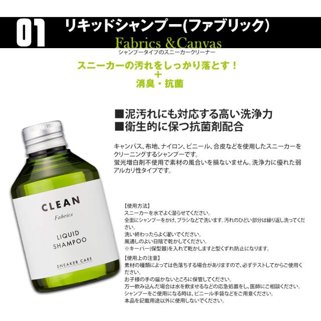 キャンバス・布地・ナイロン・ビニール・合皮などを使用したスニーカーをクリーニングするシャンプーです。