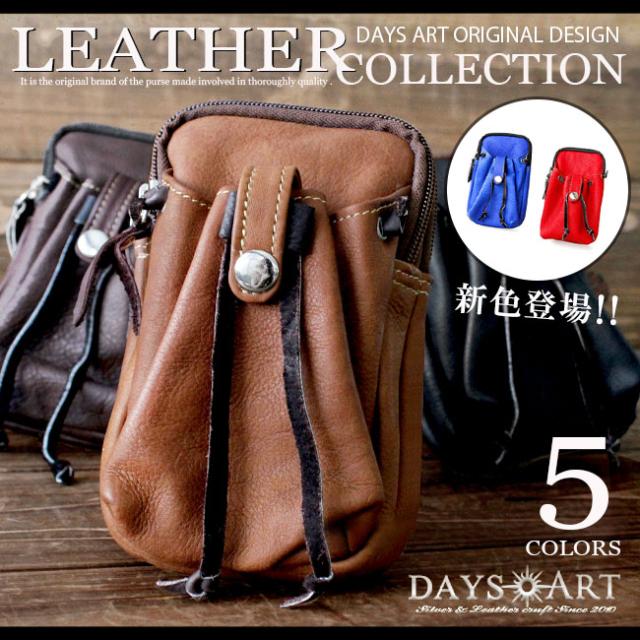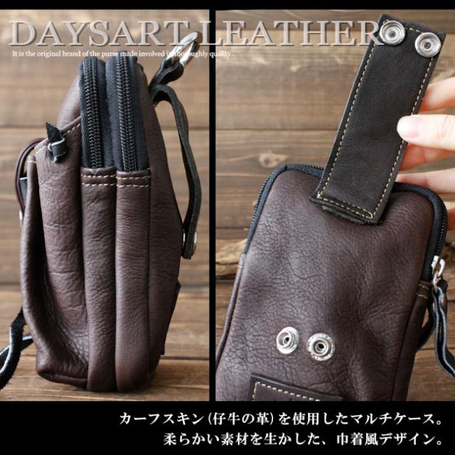 デイズアート スマホケース メンズ レディース ユニセックス 本革 カーフスキン ハンドメイド 巾着ポケット ブラック ブラウン ダークブラウン lo254