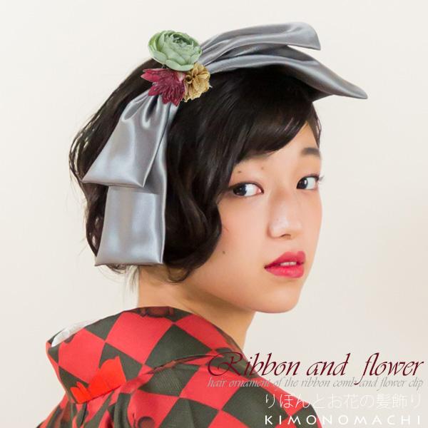 【Prices down3】卒業式 髪飾り リボンとお花 髪飾り2点セット 成人式「グレーリボンとお花」リボンコーム リボン髪飾り お花髪飾り 振袖髪飾りss2512wkk25