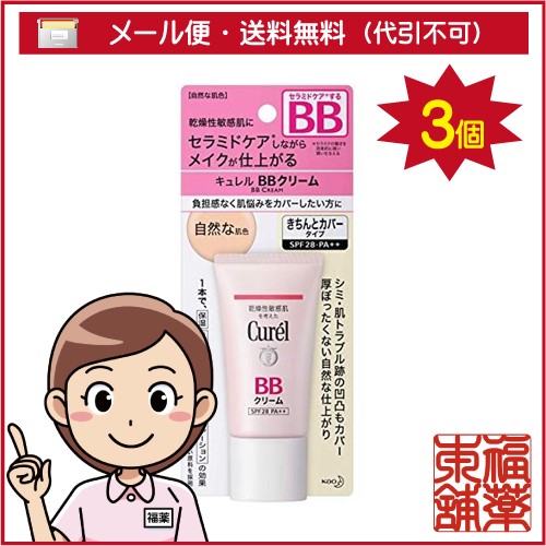 キュレル ベースメイク BBクリーム [自然な肌色] 化粧下地 ファンデーション 保湿UVカット (35g) × 3個 [ゆうパケット・送料無料]