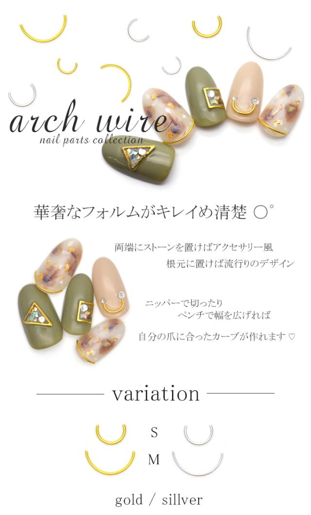 アーチワイヤー (ゴールド/シルバー)2サイズ 20個入り ワイヤー カーブステック カーブパーツ ネイル ジェルネイル セルフネイル