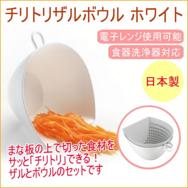 チリトリザルボウル ホワイト (MZ-3518) 日本製 ザル ボール ボウル 目盛り 計量 料理 調理 便利グッズ アイデアグッズ