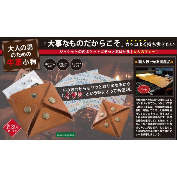 ■材質 /〔本体〕 牛革 〔バネホック〕合金、合金メッキ ■サイズ /(約)70×70×18mm ■重量 /(約)22g ■生産国 / 日本製 ※天然素材のため色の差やシワがあります。革の色移りや日焼けにはご注意ください。 ※水に濡れるとシミや変形の原因になります。事前にオイルや防水スプレーでのメンテナンスで緩和することができます。