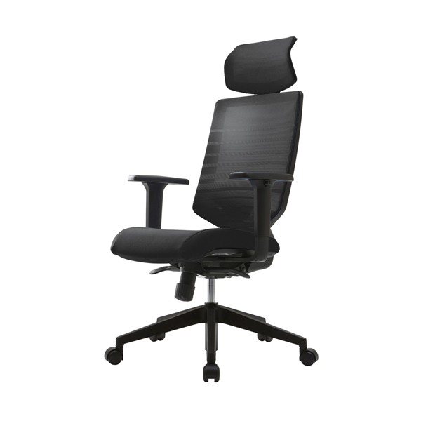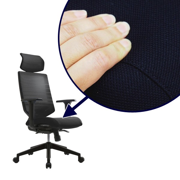 頭部を支えるヘッドレスト付きです。S字構造により頭部にちょうど良くフィットし、首や肩の負担を軽減します。背もたれは密度に変化をつけたグラデーションメッシュで、体圧を分散させ、腰や背中の負担を取り除きます。通気性が良いので蒸れにくいのも利点の一つです。