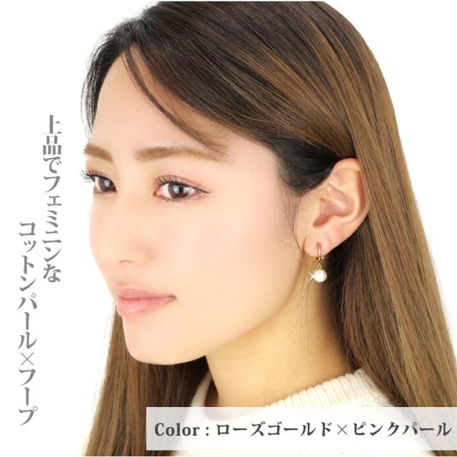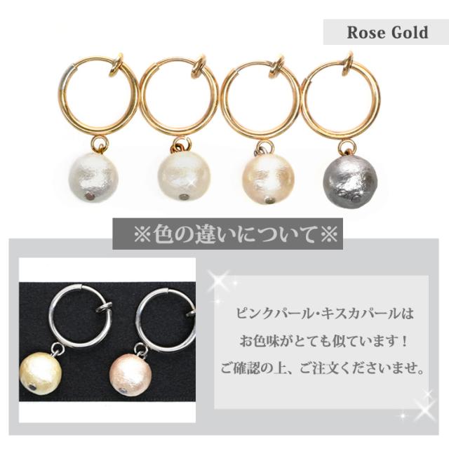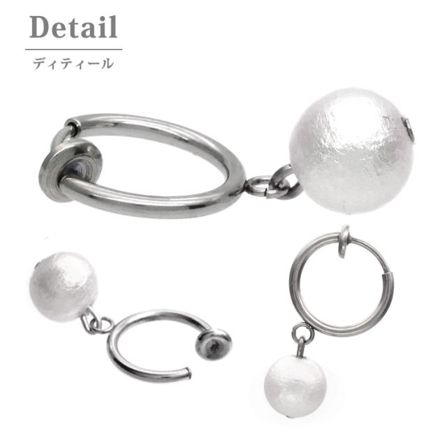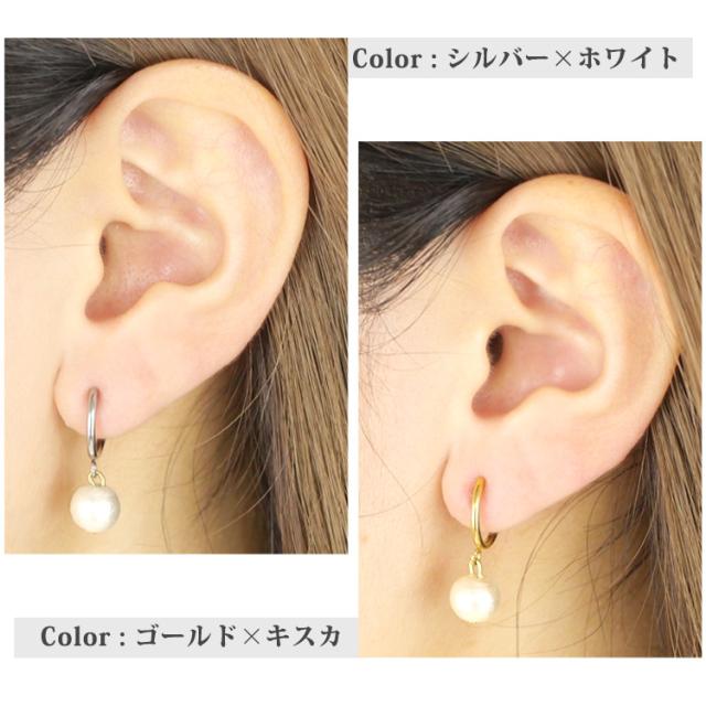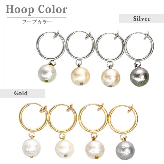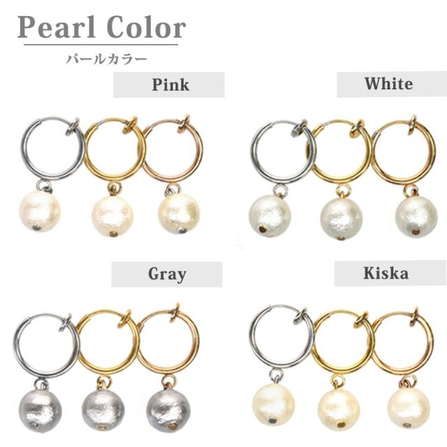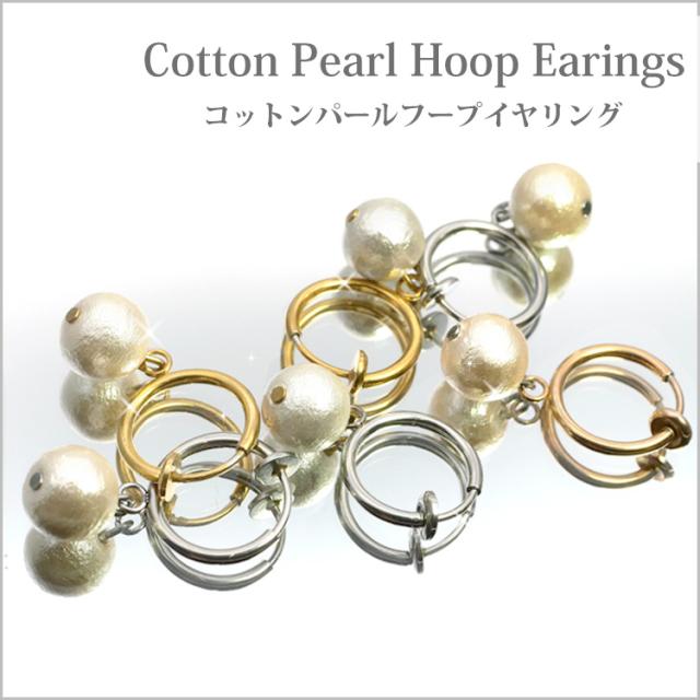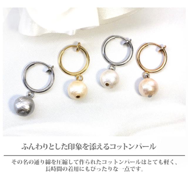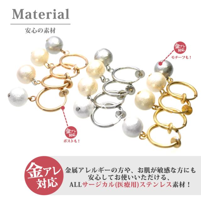 金属アレルギー対応 ステンレスイヤリング コットンパールフープイヤリング 両耳用 316L