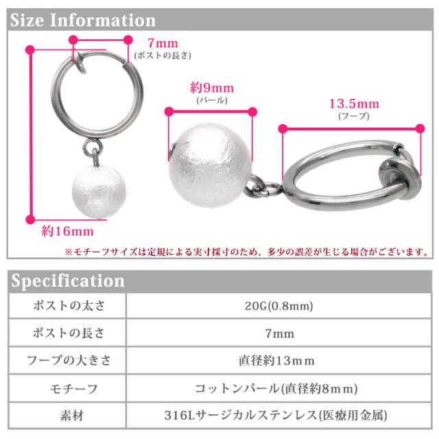□フープ直径:約1.4cm、コットンパール:約8mm