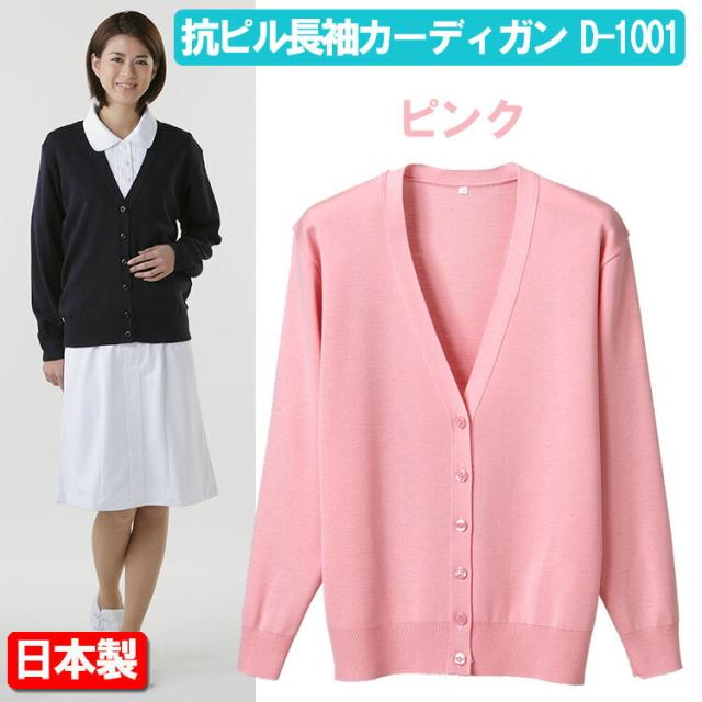 抗ピル長袖カーディガン D-1001 ピンク 3L〜5L ディーフェイズ(レギュラー丈)