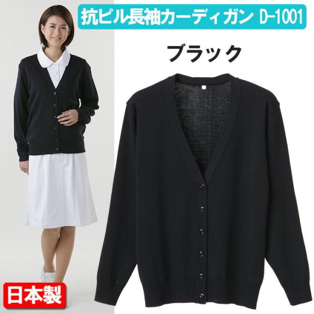 抗ピル長袖カーディガン D-1001 ブラック 3L〜5L ディーフェイズ(レギュラー丈)