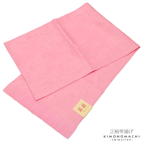 振袖向けの華やかな正絹帯揚げです。地紋のみのシンプルな帯揚げですが、全体にラメ感があり、華やかさをプラスしてくれます。