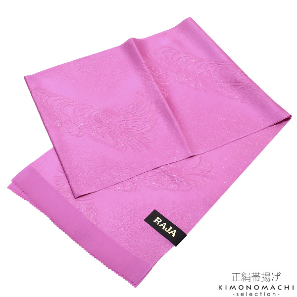 振袖向けの華やかな正絹帯揚げです。地紋のみのシンプルな帯揚げですが、全体にラメ感があり、華やかさをプラスしてくれます。
