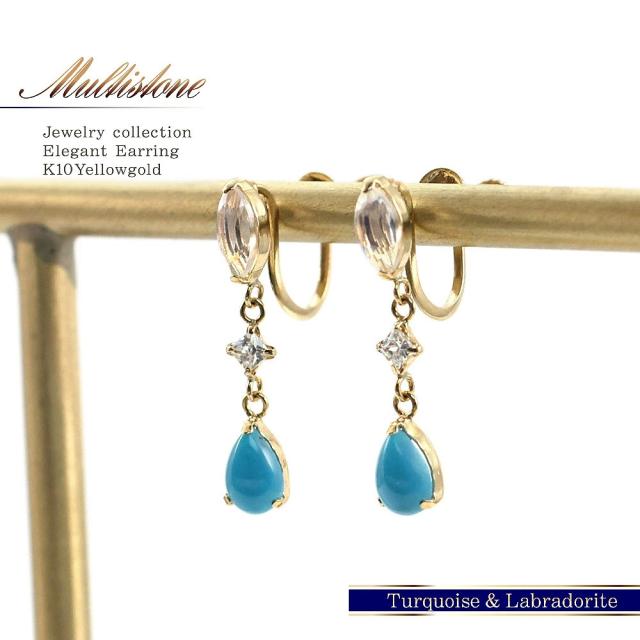 | 商品名 | ・K10YG イエローゴールド ターコイズ&ラブラドライト イヤリング |