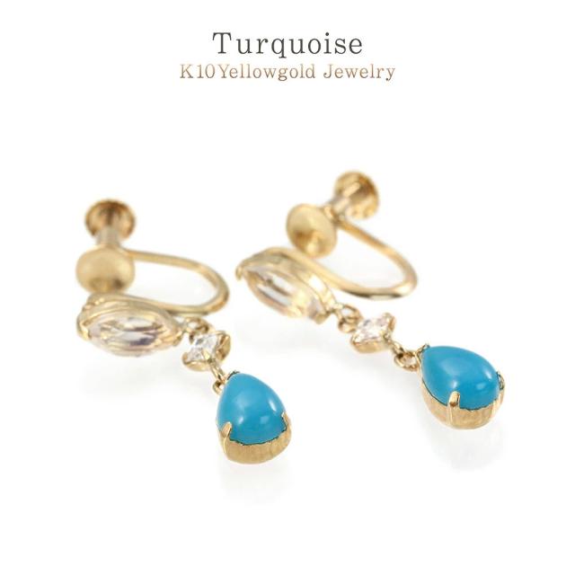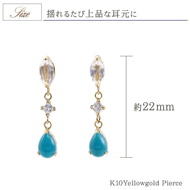 イヤリング 女性 ターコイズ ゴールド レディース トルコ石 ゆれる 雫型 ジュエリー K10 プレゼント アクセサリー 水色 ブルー 12月 誕生石 10K 10金 宝石 天然石 お洒落 母の日 ギフト 2026 記念日 誕生日 ギフト 贈り物 女性 彼女