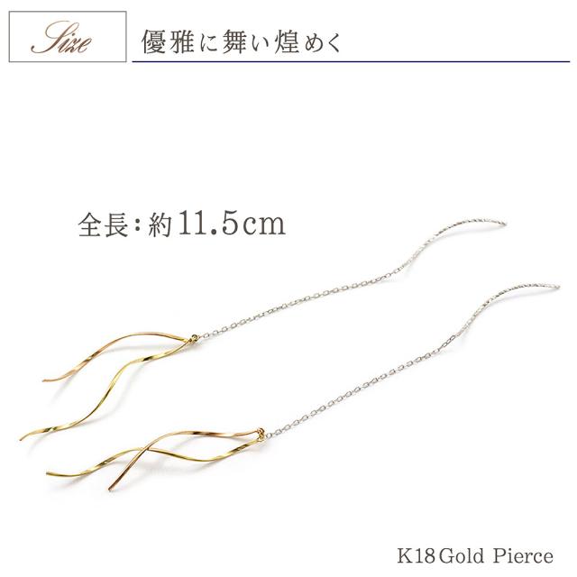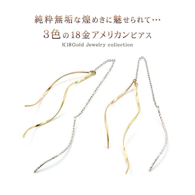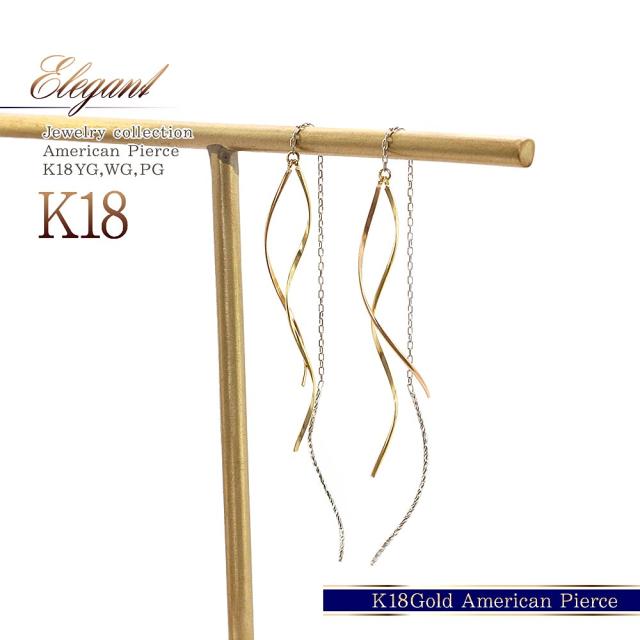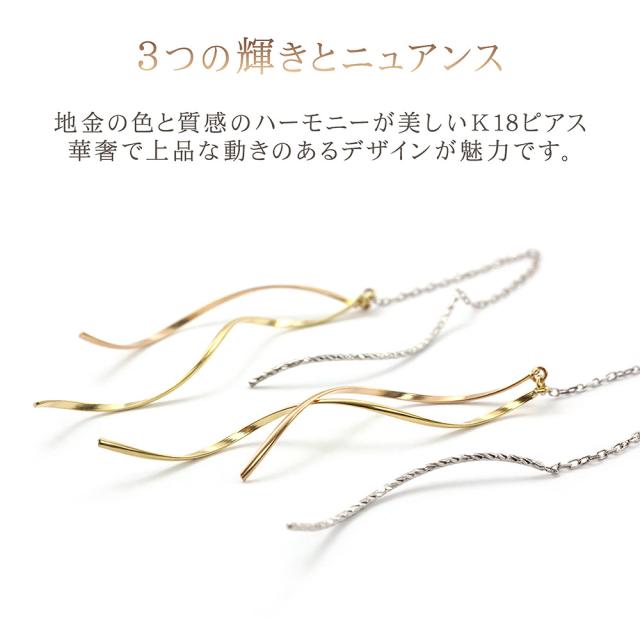 チェーンピアス 18金 ゴールド k18 ゆれる レディース 18k 揺れる アメリカンピアス 長い ロング シンプル かわいい ピアス 普段使い 3色 可愛い 母の日 ギフト 2026 記念日 誕生日 贈り物 女性 彼女 妻 嫁 おしゃれ コンサバ コンビジュエリー