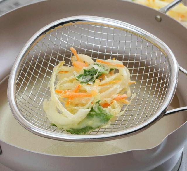 目の大きな特殊アミで油切りが素早くできる