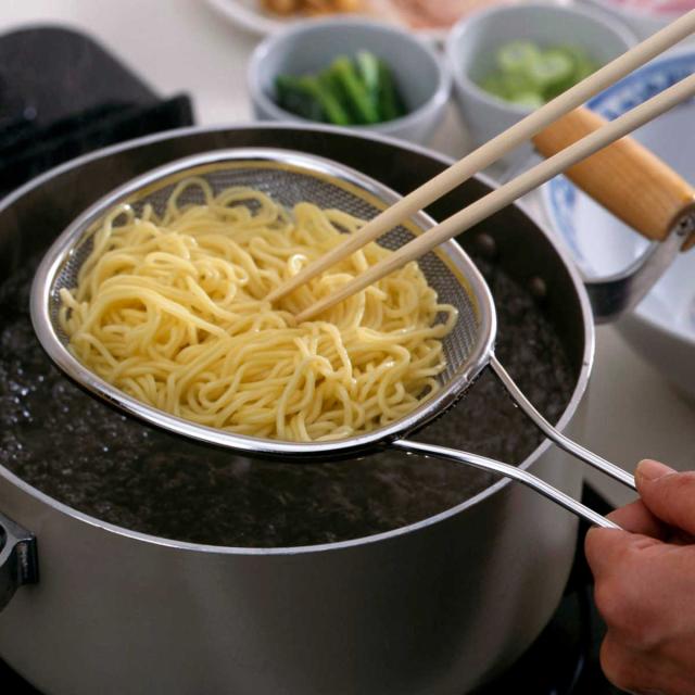 ●サッとすくって素早く油切りができるストレーナーです。