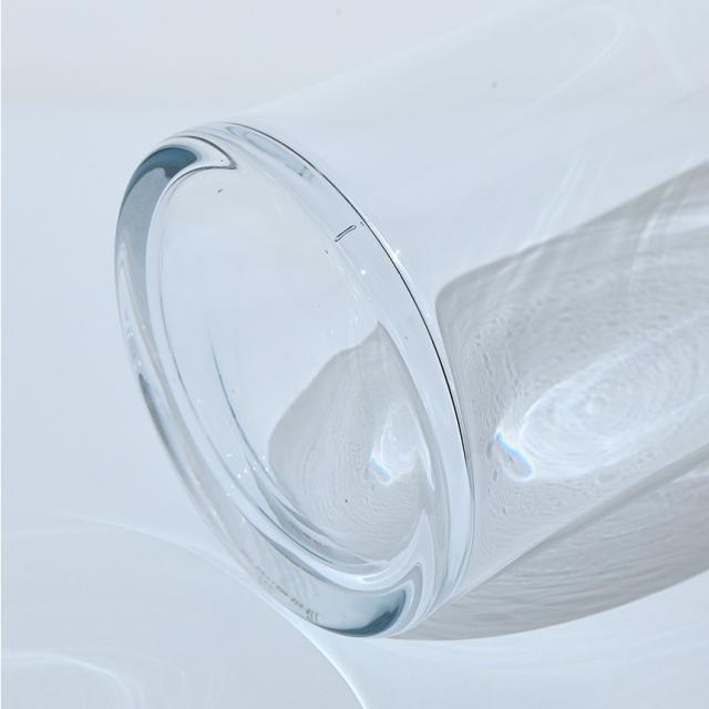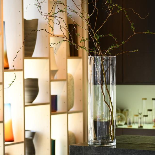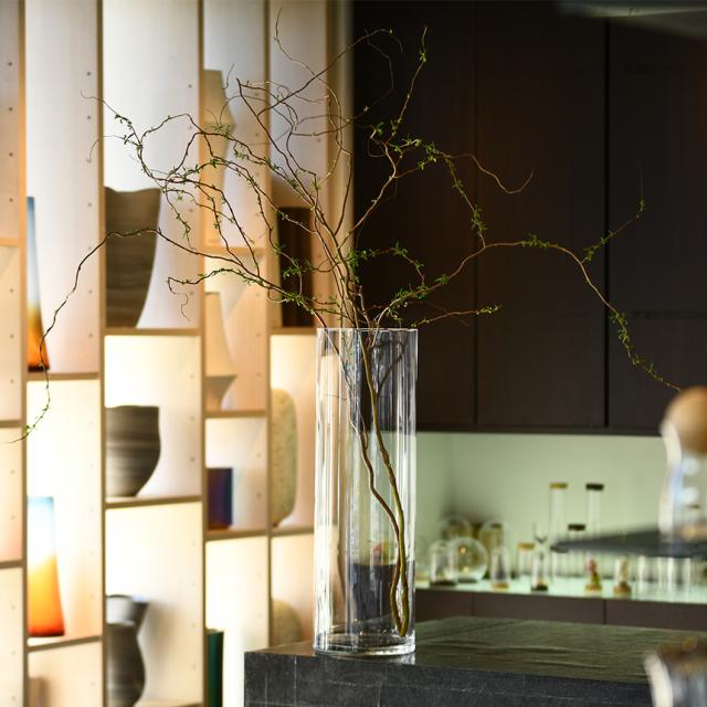 シリンダー型で、ご家庭ではもちろんのこと、お店やホテルのエントランスなど使用場所をえらびません。その透明感のある器はいろんなお花を輝かせる事でしょう。