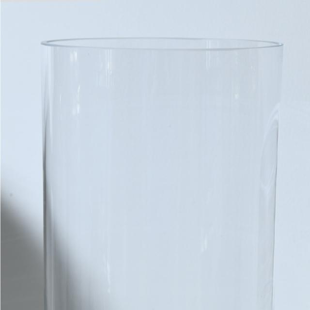 備考:気泡が少なく、透明感と厚みのある品質の良いヨーロッパガラスの花器。シリンダー型で、ご家庭ではもちろんのこと、お店やホテルのエントランスなど使用場所をえらびません。その透明感のある器はいろんなお花を輝かせる事でしょう。