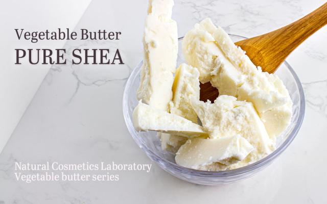 生シアバターはオレイン酸とステアリン酸を多く含み、体温付近で溶けるため、お肌に浸透しやすく、弾力のあるみずみずしいお肌へと導きます。また、フィトステロールや長鎖の脂肪酸が多く含まれているため、高い保湿性があり、乾燥肌やパサついた髪に効果があると言われています。