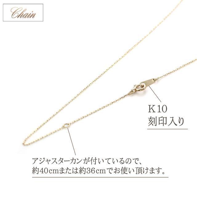 | 地金・素材 | ・天然ダイヤモンド ラウンドブリリアントカット(品質保証書付き) ・地金:K10(10金)/ YG(イエローゴールド)、PG(ピンクゴールド)、WG(ホワイトゴールド) ※刻印箇所等は画像と異なる場合がございます。 |