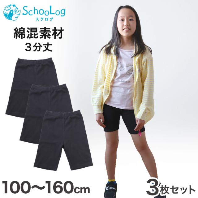 【3枚セット】ガールズスパッツ 3分丈スパッツ 黒 100cm〜160cm (三分丈 子供 子ども 女の子 男の子 ジュニア オーバーパンツ 黒 制服下 保育園 小学生 インナー 下着)