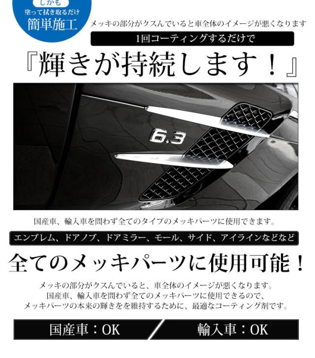 国産車、輸入車を問わず全てのタイプのメッキパーツに使用できます。