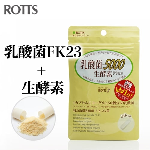 FK-23 濃縮乳酸菌 高配合 サプリ 乳酸菌5000生酵素Plus (30カプセル) 1袋に15兆個の 濃縮 乳酸菌 FK23 + 5種類の 活性酵素 サプリメント ニチニチ フェカリス菌 ロッツ ROTTS