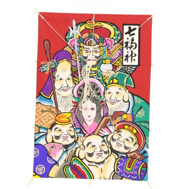 インテリア 手描き和凧 特大角凧 約縦68×横47cm【福-105】七福神絵画 お正月飾り 壁掛け可・飾凧 日本の伝統