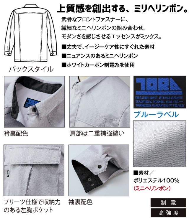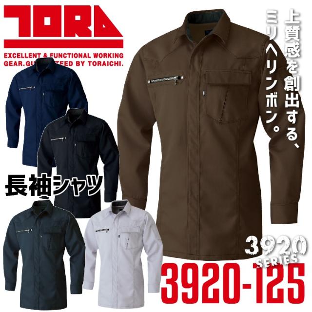 寅壱 長袖シャツ ミニヘリンボン 軽量 イージーケア ジップアップ 長袖 3920シリーズ 3920-125 作業服 作業着