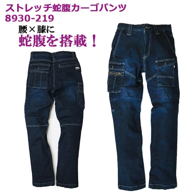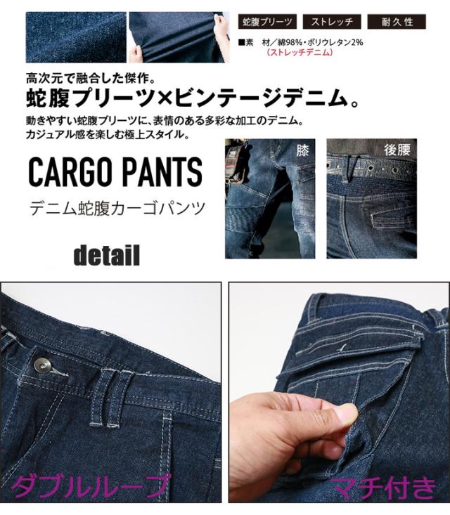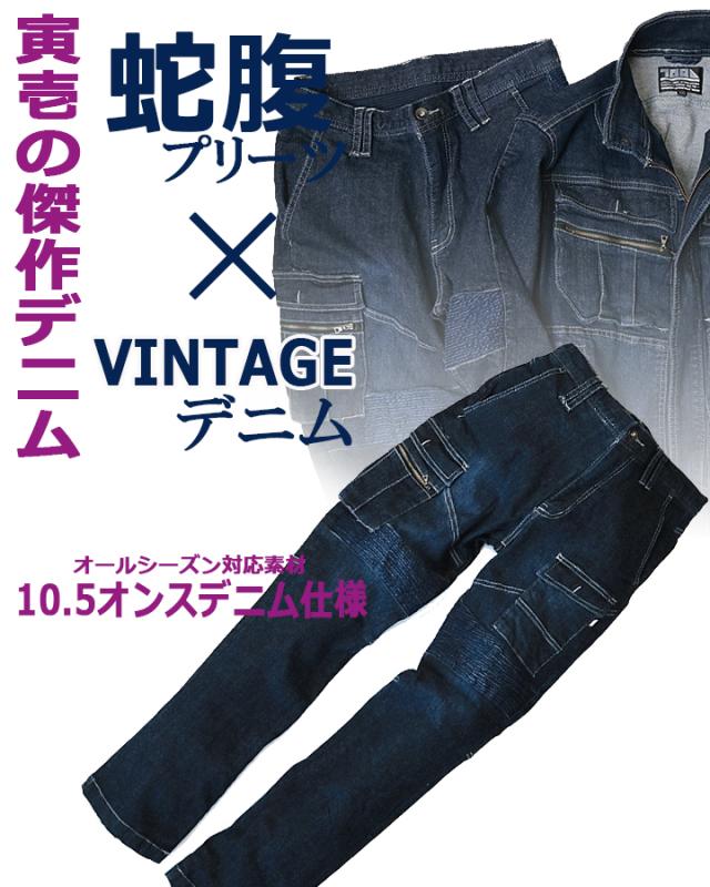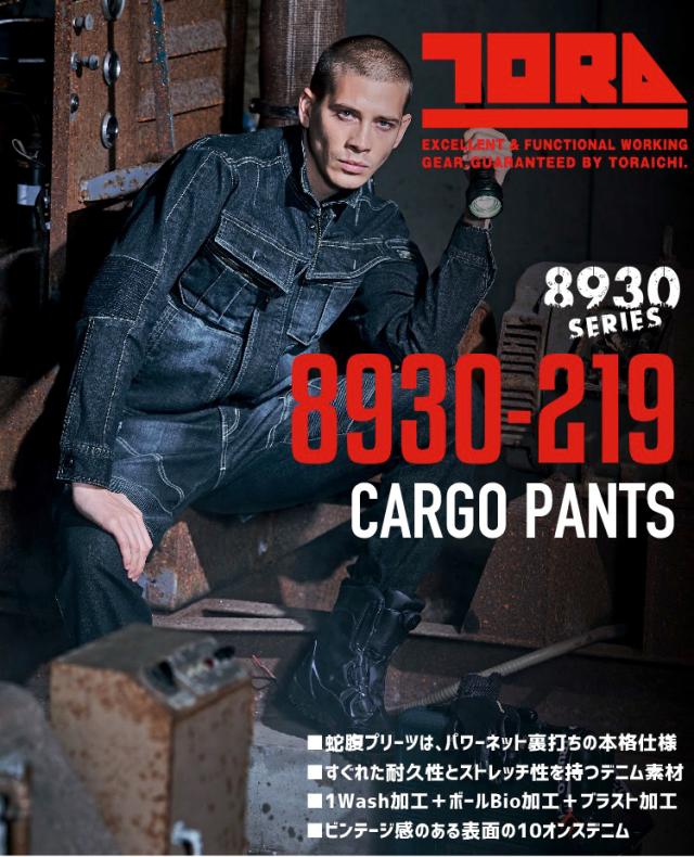 寅壱 デニム 蛇腹カーゴパンツ 蛇腹プリーツ 耐久性 ストレッチ 10オンス 8930シリーズ トライチ 8930-219 作業服 作業着 ズボン