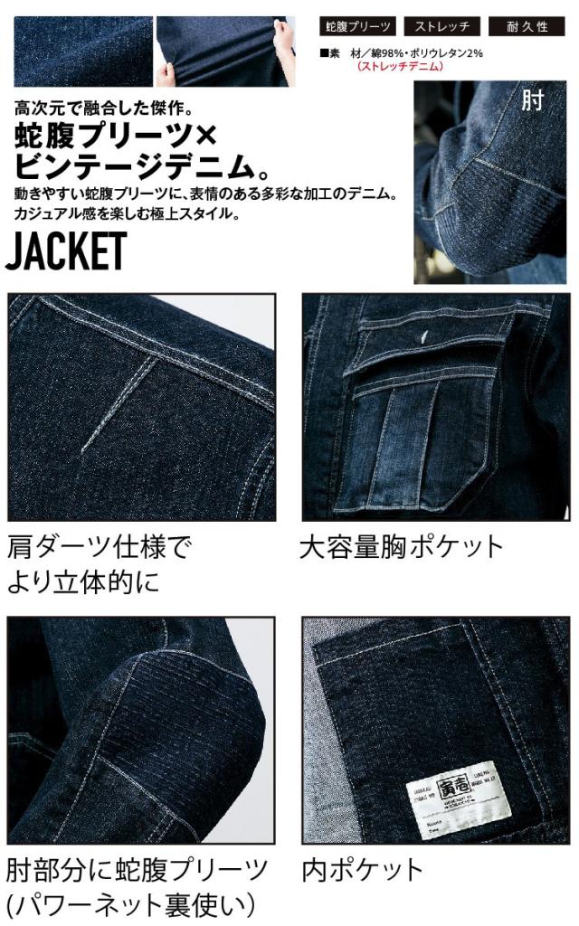 寅壱 デニム 蛇腹ライダースジャケット 蛇腹プリーツ ストレッチ 耐久性 長袖 8930シリーズ トライチ 8930-554 作業服 作業着 アウター