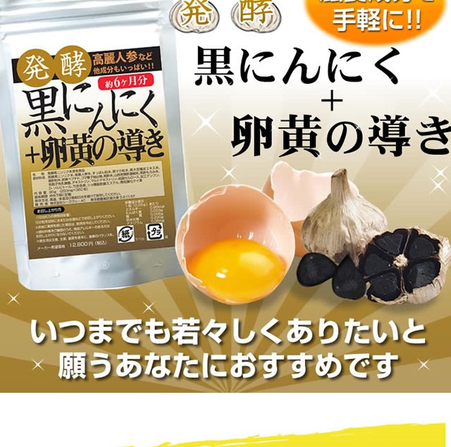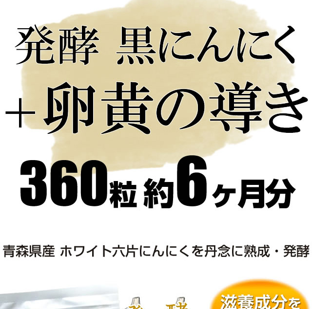 【送料無料】発酵黒にんにく+卵黄の導き360粒(約6か月分)5万個突破!実感力が決め手♪滋養成分の宝石黒粒★青森県産ニンニクを熟成発酵 ホワイト六片 タンニン ジンセサイド すっぽん アルギニン アミノ酸 鉄 カルシウム カリウム リン マグネシウム 亜鉛 マカ 黒酢