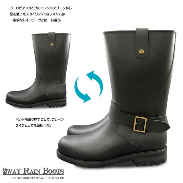 レインブーツ メンズ ロング 人気 防水 おしゃれ 長靴 レインシューズ 黒 スノーブーツ メンズ 防滑 ラバーブーツ メンズ アウトドア 雪道 2way エンジニアブーツ 防水 メンズ ブラック 大きいサイズ 2130 送料無料