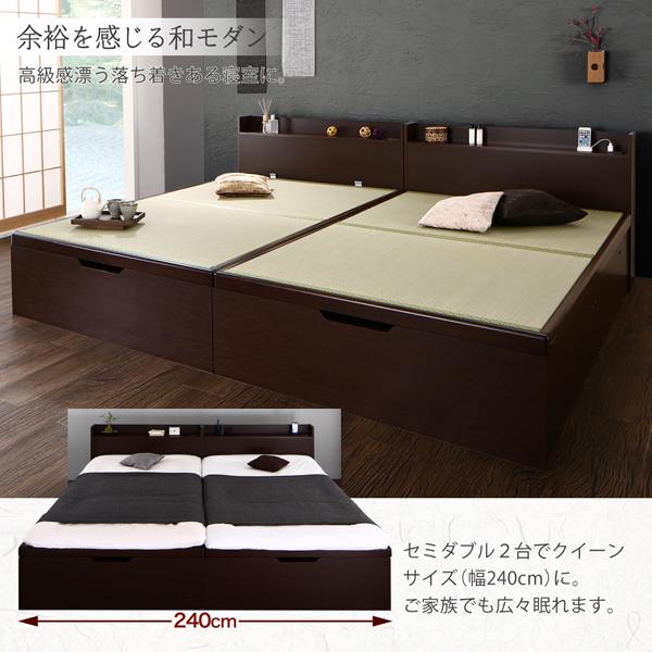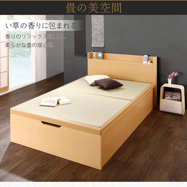 シンプルモダンデザイン 大容量収納 日本製 棚付き ガス圧式跳ね上げ 畳ベッド 結葉 ユイハ 国産畳 シングル 深さラージ 〔フレーム色〕ダークブラウン 【北海道・沖縄・離島配送不可】