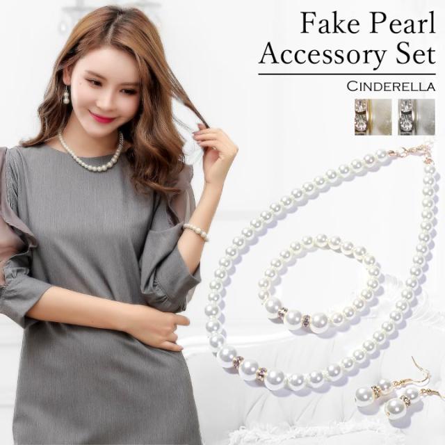 柔らかな輝きを放つパールとビジューの煌めきが上品なアクセサリー3点セット♪