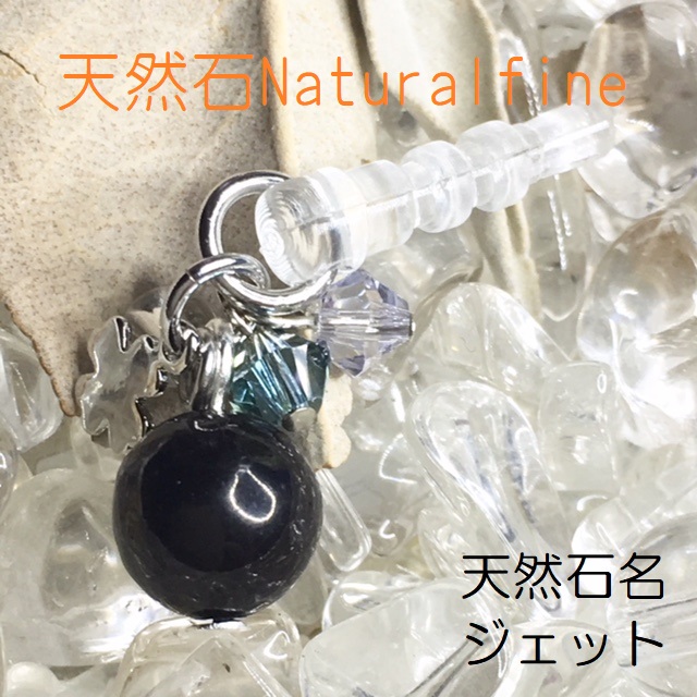 イヤホンジャック ジェット 天然石 アンドロイド iphone スマホピアス ストラップ パワーストーン 財運上昇