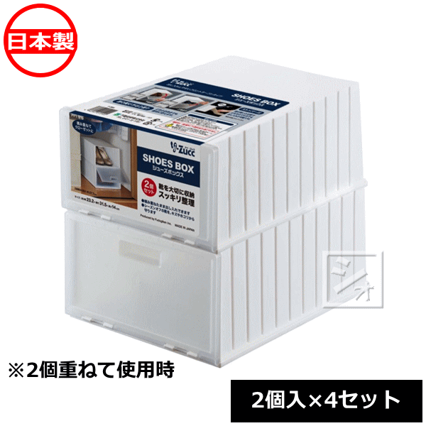 不動技研 F2606 シューズボックス 2個入×4セット ホワイト 日本製