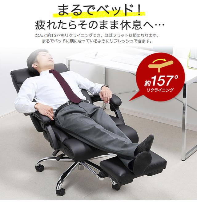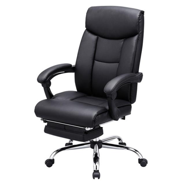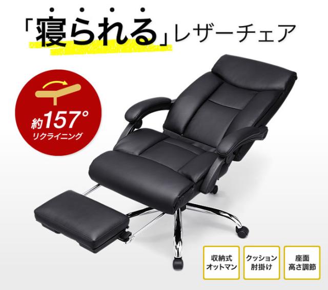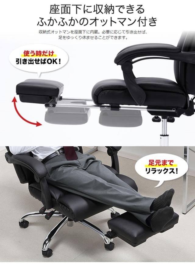 ■商品名:ハイエンドPUレザーチェア 疲れたらオットマンを出してくつろぎタイム 寝られる書斎向けチェア オットマン収納レザーチェア OAチェア イス 椅子 いす ブラック